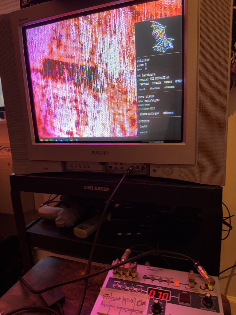 Built to orchestrate an Edirol V4 via MIDI, PSX and Genesis to a low latency video capture setup to streamline live performances.