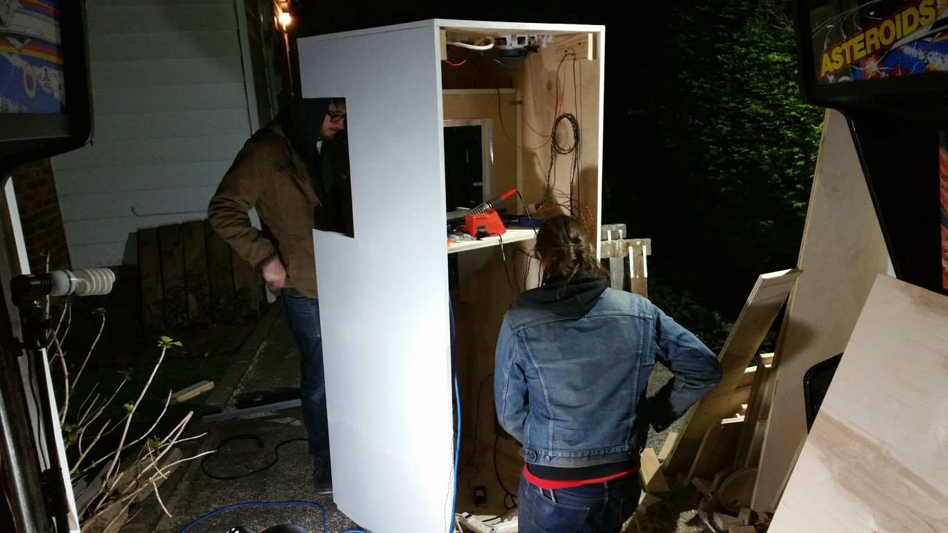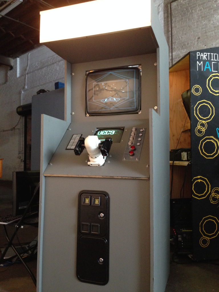 It started with an XY Monitor off Craigslist and ended with a custom designed, FPGA based vector video card, a gunner's control from an M1 tank, a separate monochrome HUD, an air raid siren, and a fully functional ruble acceptor. I designed the FPGA vector drawing system (VHDL) and HUD (python/SDL), Todd made the analog vector amp and cabinet, and Dooley made the game engine. A story about nuclear hysteria in the Cold War with a killer soundtrack from Nicholas "Windbreaker" Read.